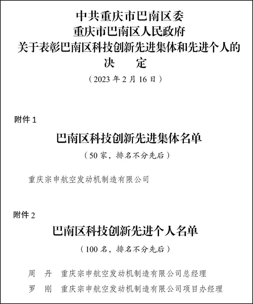 2023年7月14日,國家工信部公布了第五批專精特新“小巨人”企業名單,宗申航發成功通過國家級專精特新“小巨人”企業認定。