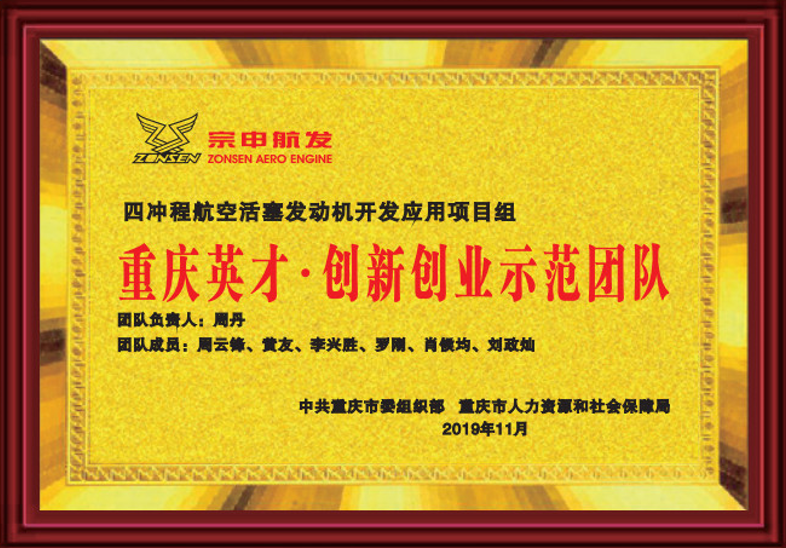 2018年10月10月,我司四沖程航空活塞發(fā)動(dòng)機(jī)開(kāi)發(fā)應(yīng)用項(xiàng)目組獲得重慶英才創(chuàng)新創(chuàng)業(yè)示范團(tuán)隊(duì)。